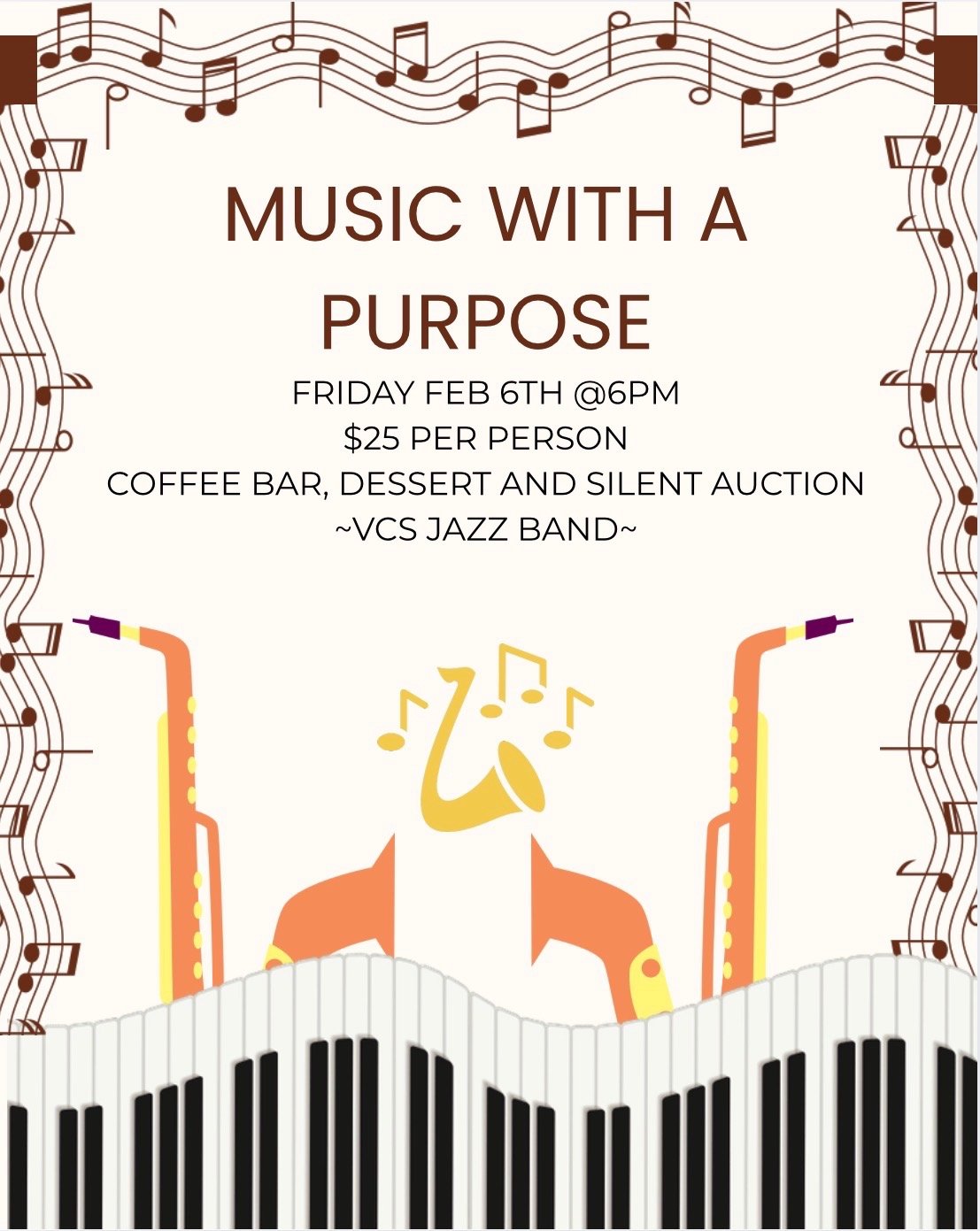 We will be having a Fundraiser Concert night on February 6th, at 6pm! Entry is $25, with coffee, a dessert bar, and live jazz from VCS High school! There will also be a silent auction, with many fun items for auction! Click below to join!